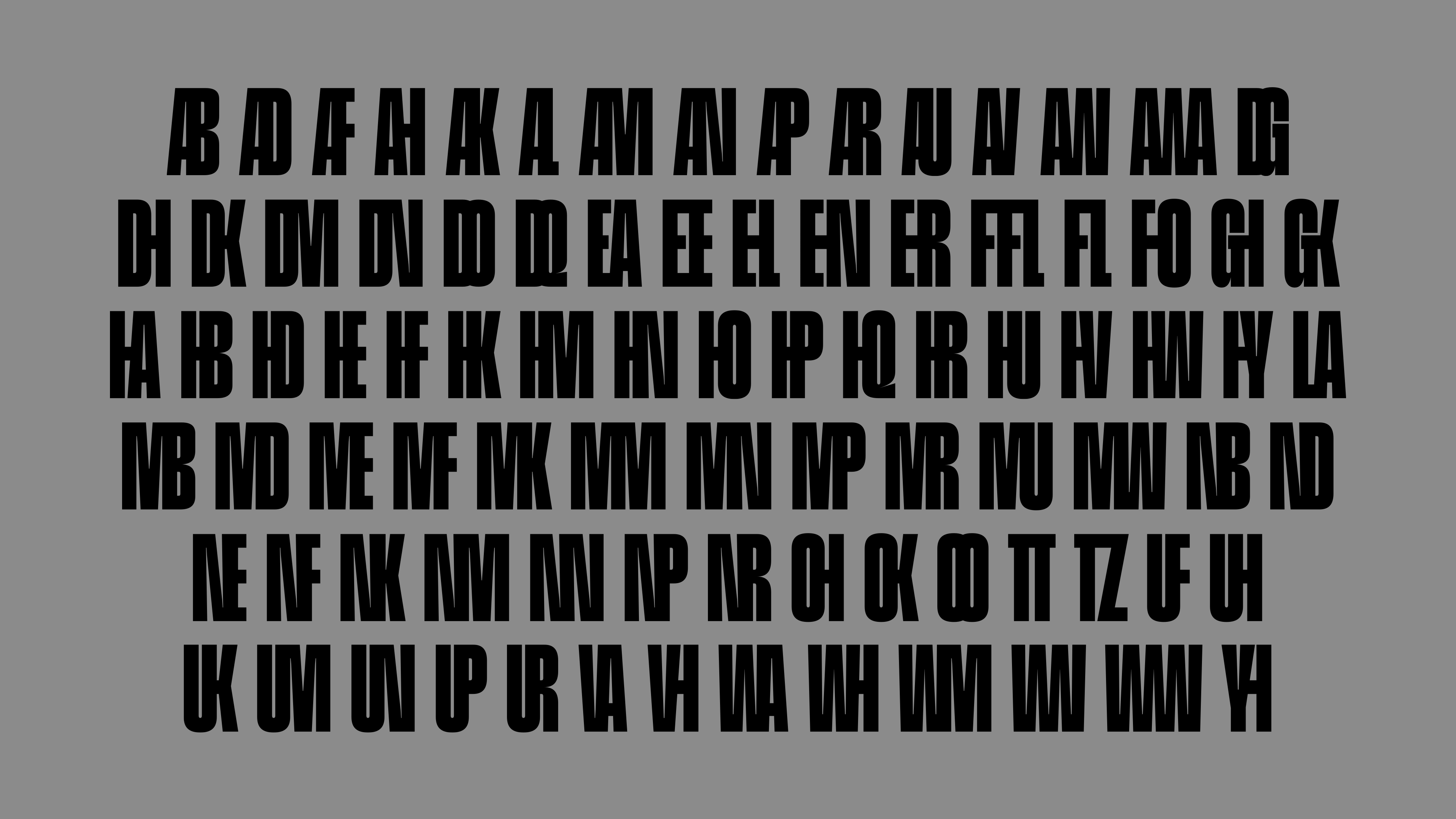 The font includes multiple built-in standard ligatures that deviate from the norm, reflecting the wordmark’s ligatures and giving the typeface a distinctive and recognizable quality.